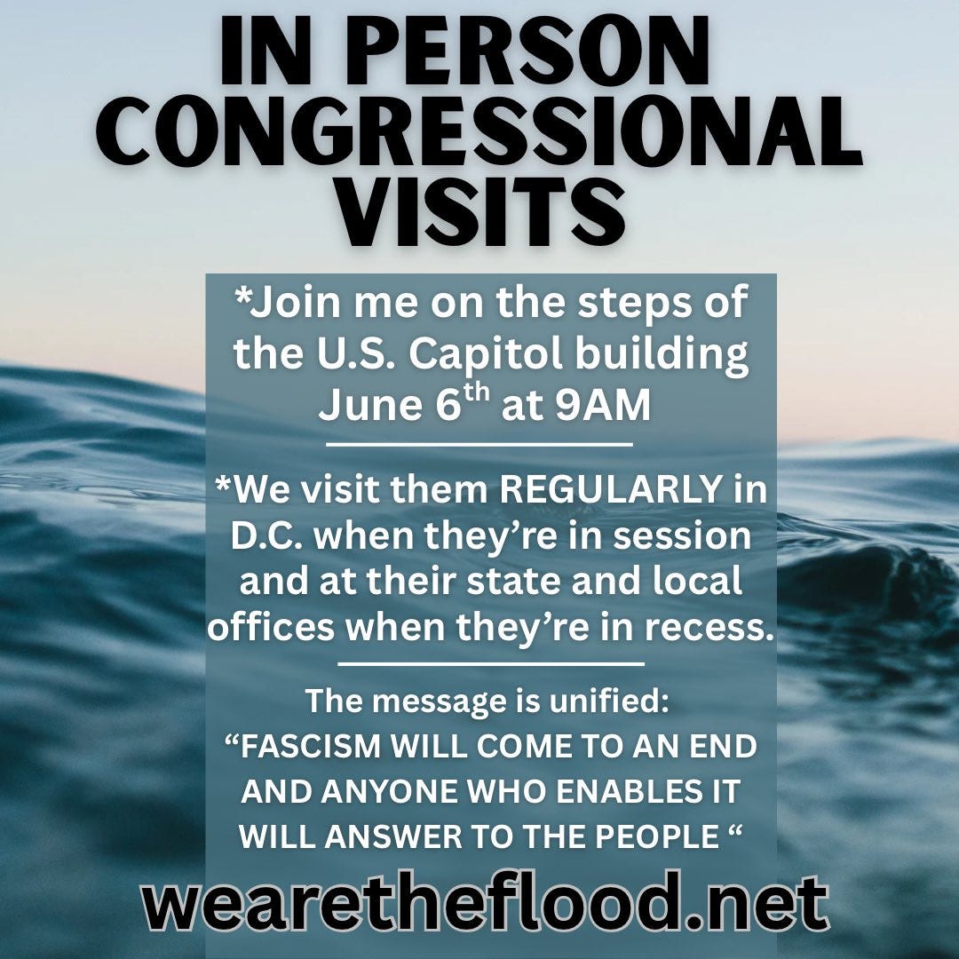 Join We Are The Flood on Capitol Hill, June 6, 9 AM ET, and tell Congress we will not accept fascism and if they do, they will be held accountable.