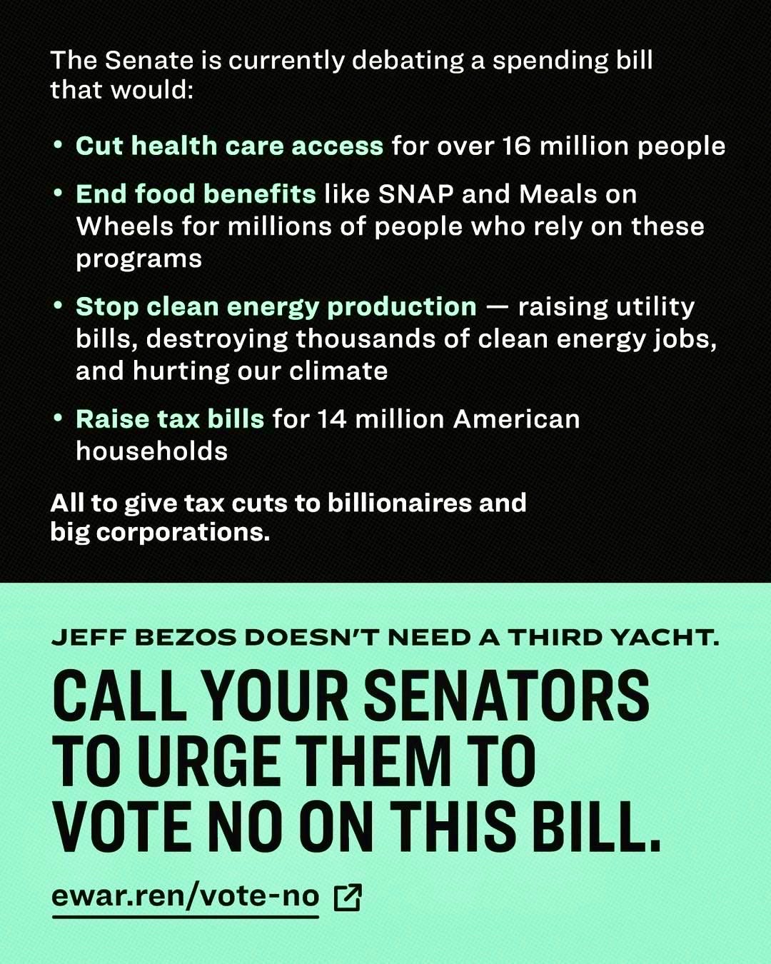 From Indivisible — Trump and the GOP’s so-called “Big Beautiful Bill” is anything but — it’s a dangerous piece of legislation that would gut Medicaid, Medicare, SNAP benefits, and more, all to hand out massive tax breaks to the wealthy.