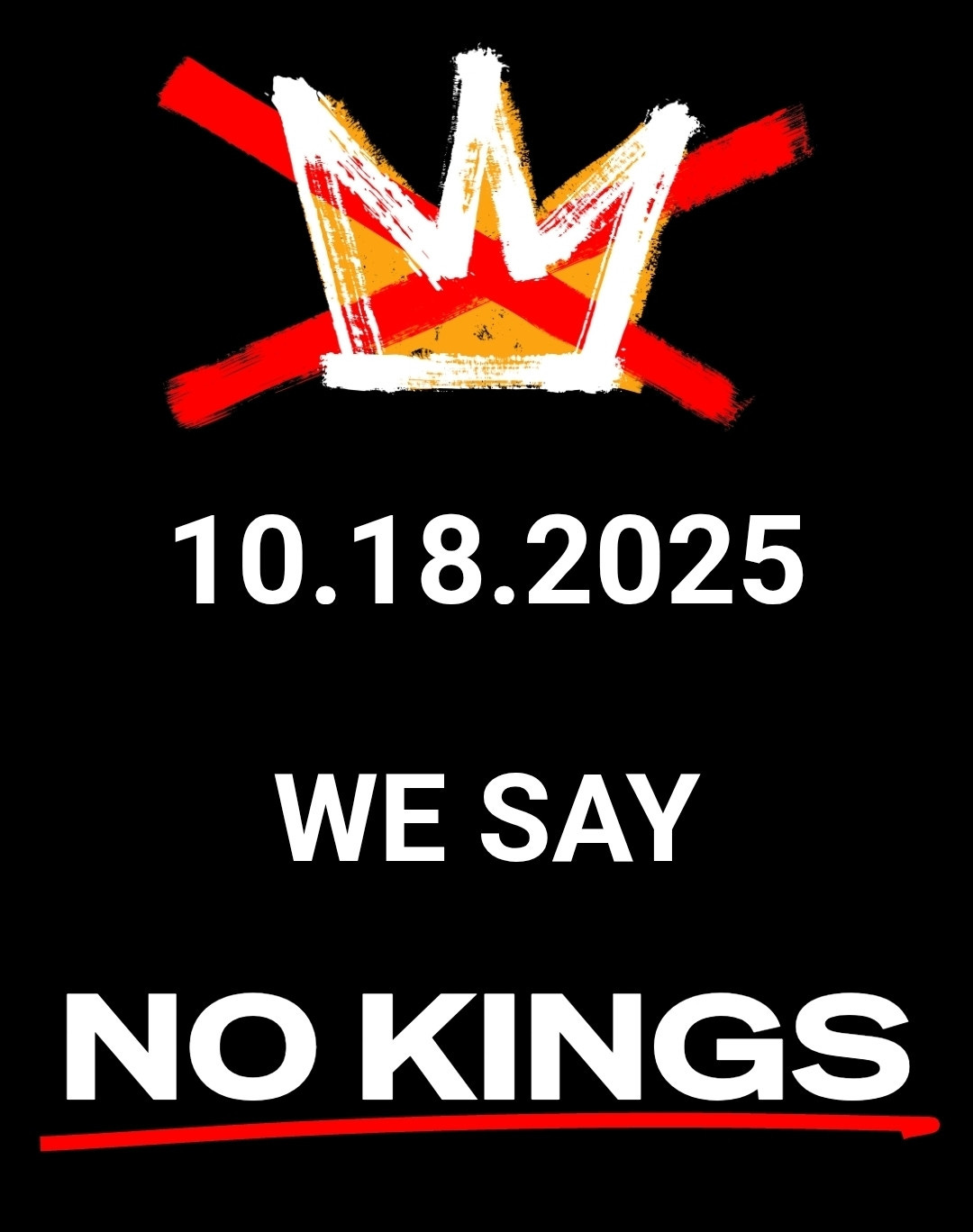 On Saturday, Oct. 18, join the No Kings Day 2 rally. No Kings Day in June was successful, and in October we again will speak out against the Trump regime and say: America has No Kings! To create and host an event, click here. To sign up for an event, click here.