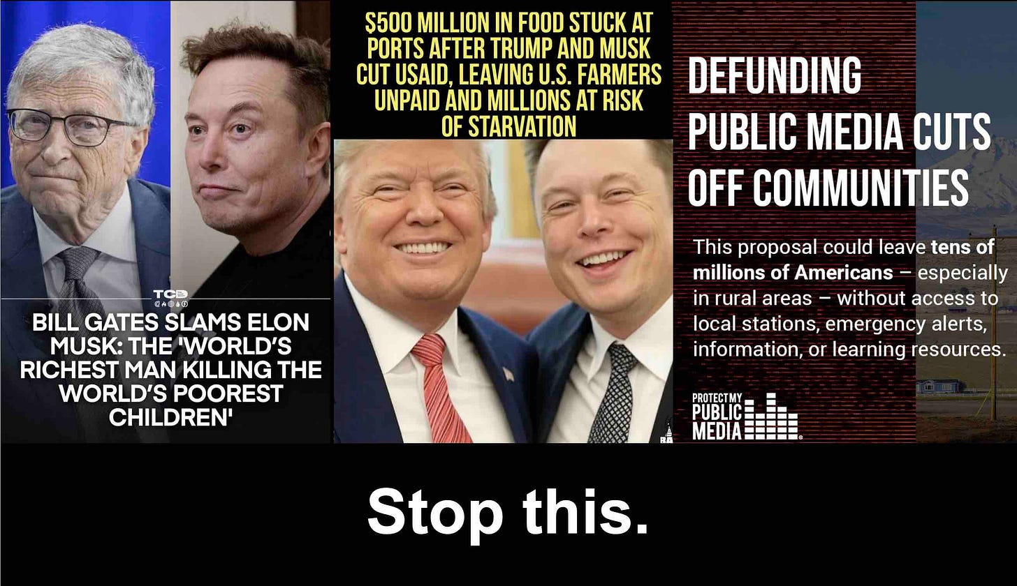 - Minimal script: I’m calling from [zip code]. [Call all their offices to get a live staff member. If voicemail, leave street address). I am calling to demand that [Rep. ___] oppose Trump’s rescissions bill gutting foreign aid, NPR, and PBS.