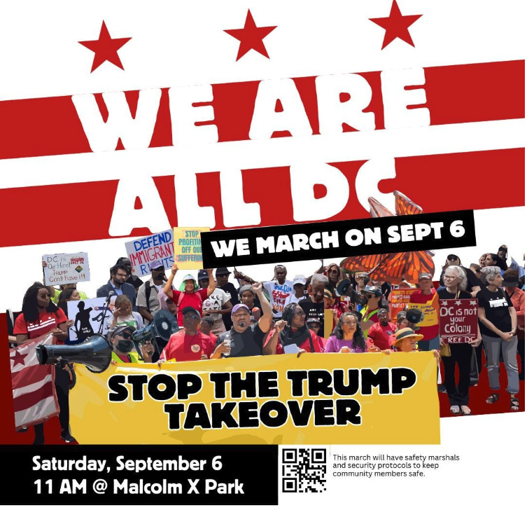 “On September 6, activists and community organizers in DC have asked us to come, to stand with them against the occupation of their streets, against the federalization of their police, against the normalization of military rule in the heart of our democracy. This is not someone else’s fight. It is ours.”