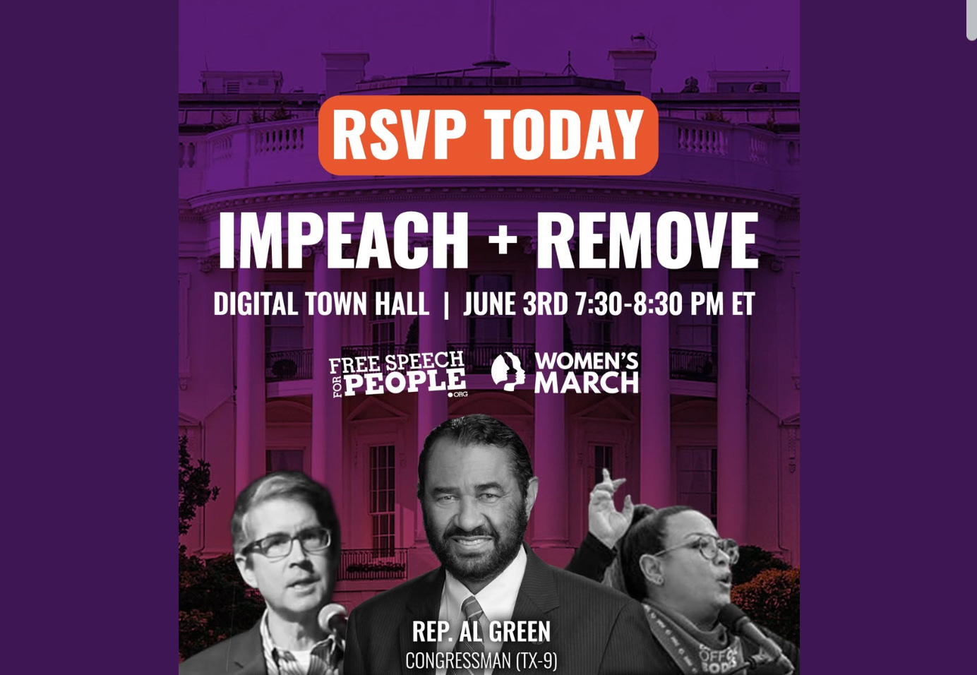 Join Rep. Al Green, Free Speech For People, and Women's March for our live Impeach & Remove Digital Town Hall.