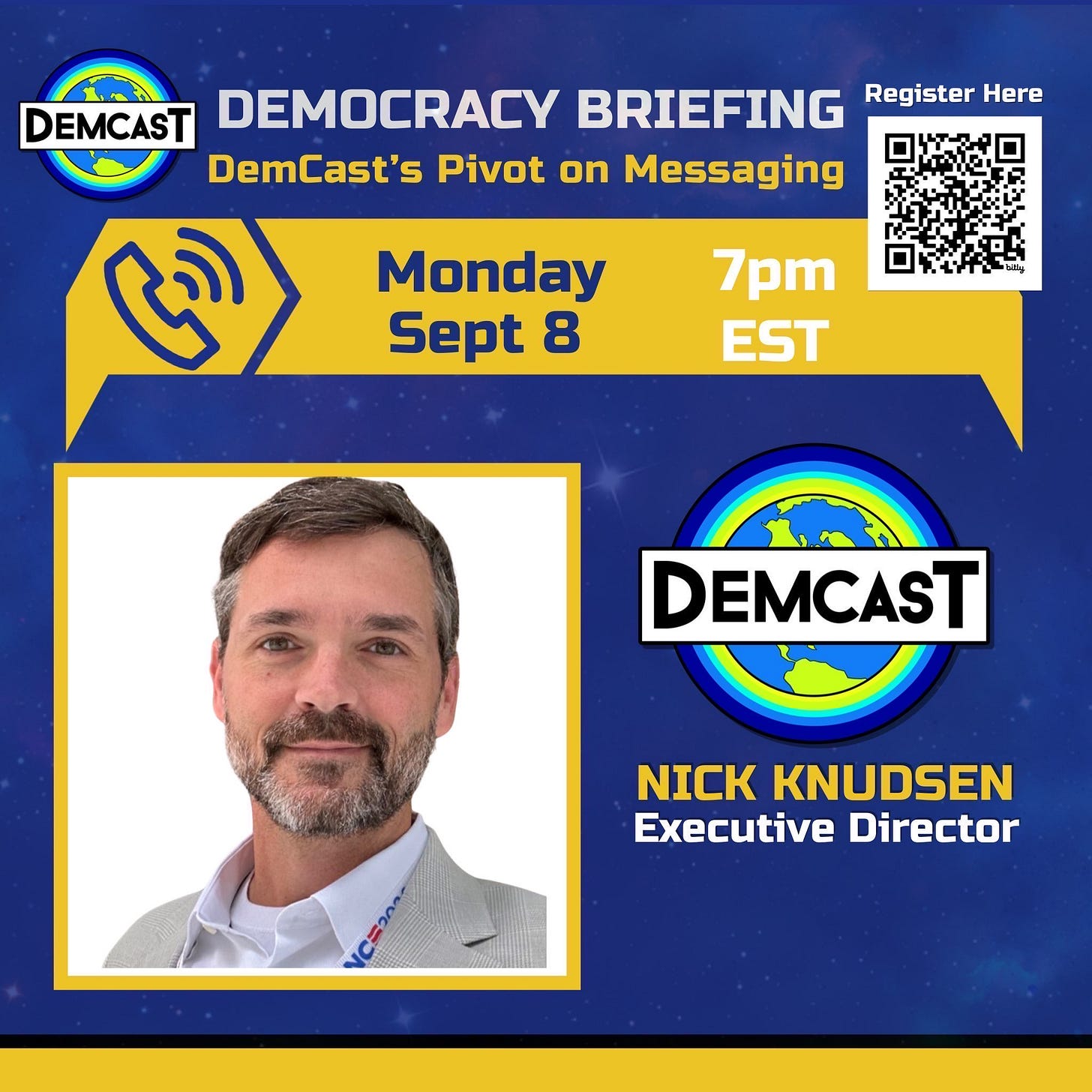 Join DemCast’s fearless leader, Executive Director Nick Knudsen, for a Democracy Briefing.