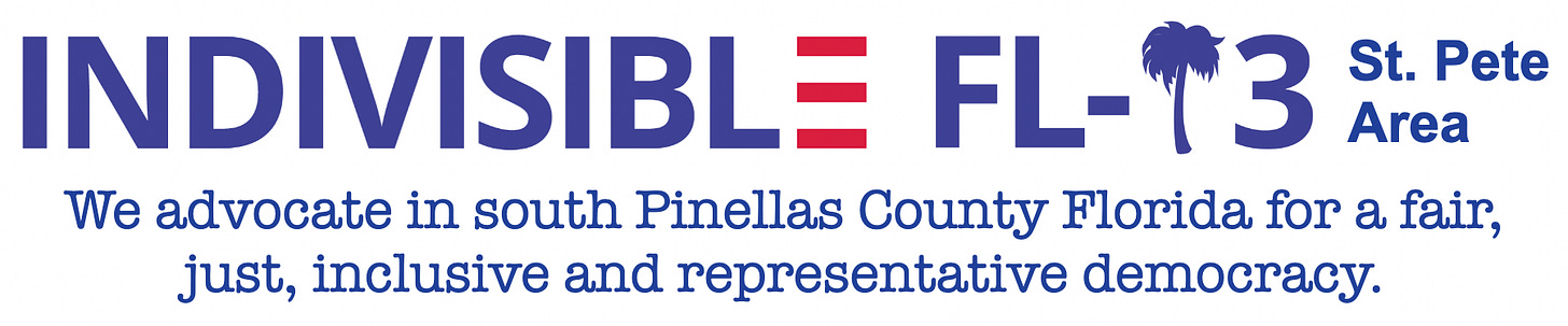 Indivisible FL-13 sent us actions you can take right now (with instructions) to oppose the Big Ugly Administration: counter gerrymandering, demand a fight from your reps this budget season, insist on the release of the Epstein files, and push back on every other issue where this administration is off the rails.