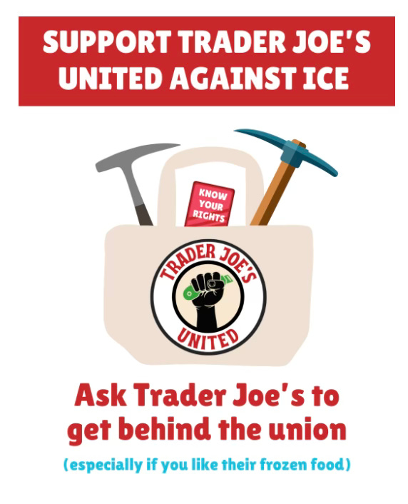 Email the Trader Joe’s United team at us@traderjoesunited.org to thank them for standing up against ICE in the workplace.