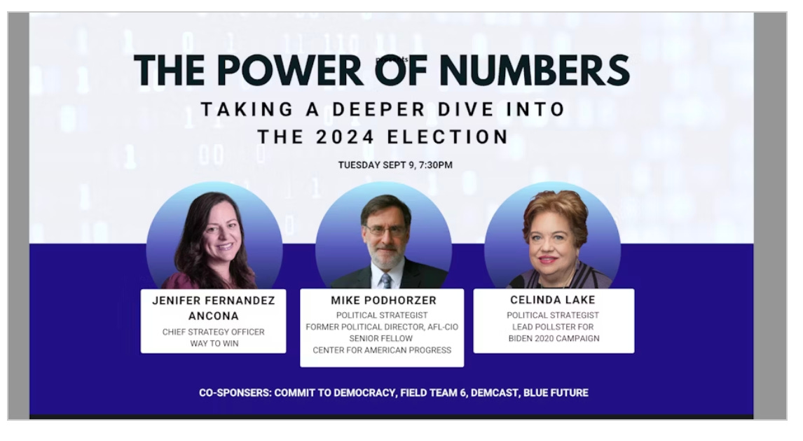 DemCast is a proud co-sponsor of an upcoming event — The Power of Numbers: Taking a Deeper Dive into the 2024 Election.