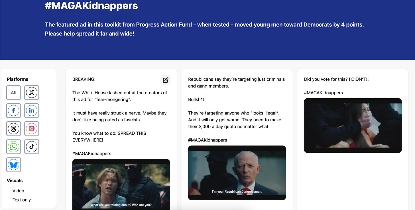Progress Action Fund just released a new ad about ICE raids. #MAGAKidnappers is brutally accurate!