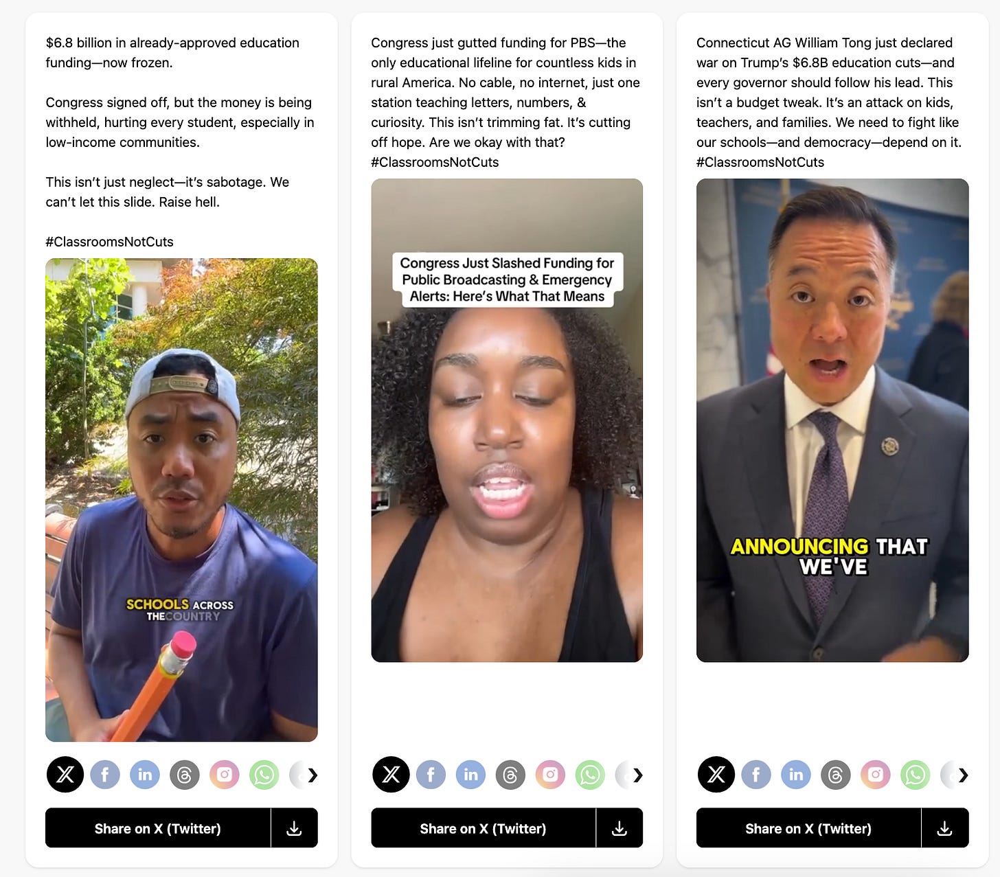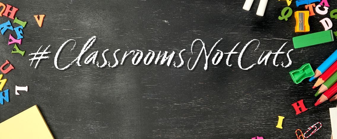 Join us RIGHT NOW as we share this message across social media. Click the image below to access our toolkit and share this message with everyone using the hashtag #ClassroomsNotCuts! It’s important that many people share this content across all social media sites so Trump knows we won’t stand for an assault on our children’s education!