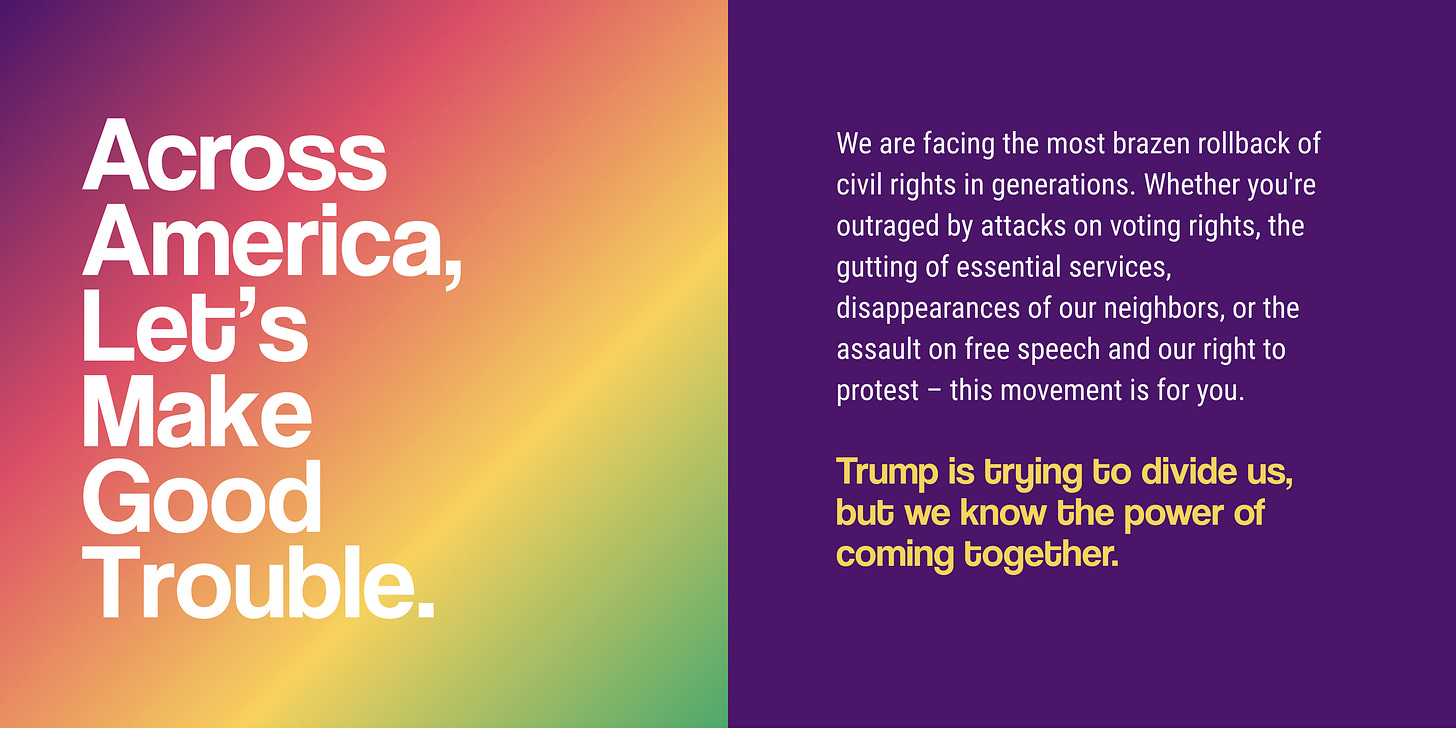Good Trouble Lives On is a national day of action to respond to the attacks posed on our civil and human rights by the Trump administration and to remind them that in America, the power lies with the people.
