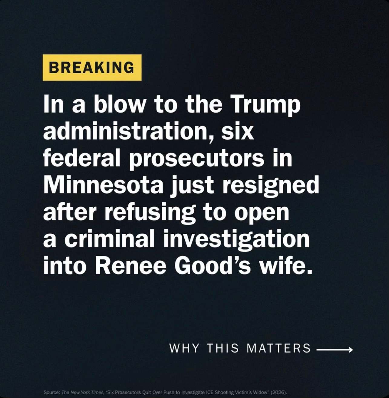 Thankfully, six MN federal prosecutors who were asked by Trump’s DOJ to look into her “ties” to “activist groups”, decided to resign today rather than pursue the order issued by Pam Bondi and her henchmen.