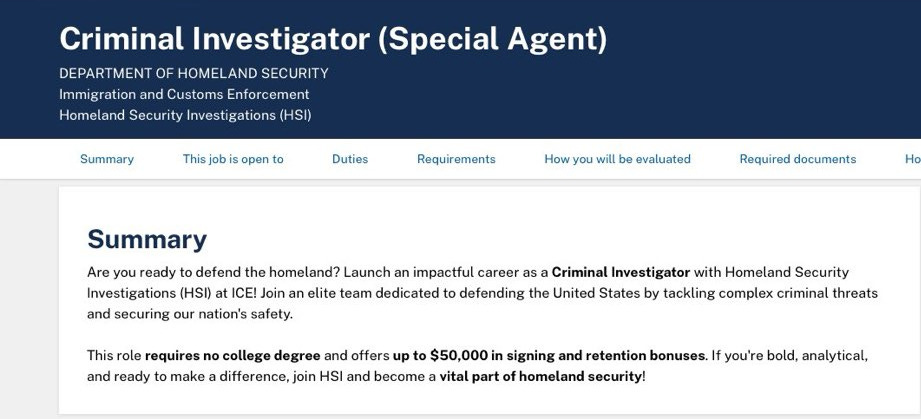DHS has gutted hiring standards to fast-track a deportation militia with unchecked power. ICE no longer requires a college degree, entrance exams, or meaningful screening. Veterans and ex-cops bypass age limits and enter through accelerated pipelines.