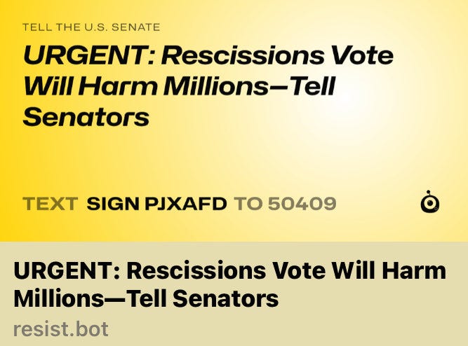 This isn’t just a budget bill. It’s a blueprint for dismantling our government, along with public goods and safety—from emergency alerts to global health efforts to children’s programming like Sesame Street. It chips away at Congress’s power of the purse and sets a dangerous precedent: that the executive branch can unilaterally defund bipartisan priorities.